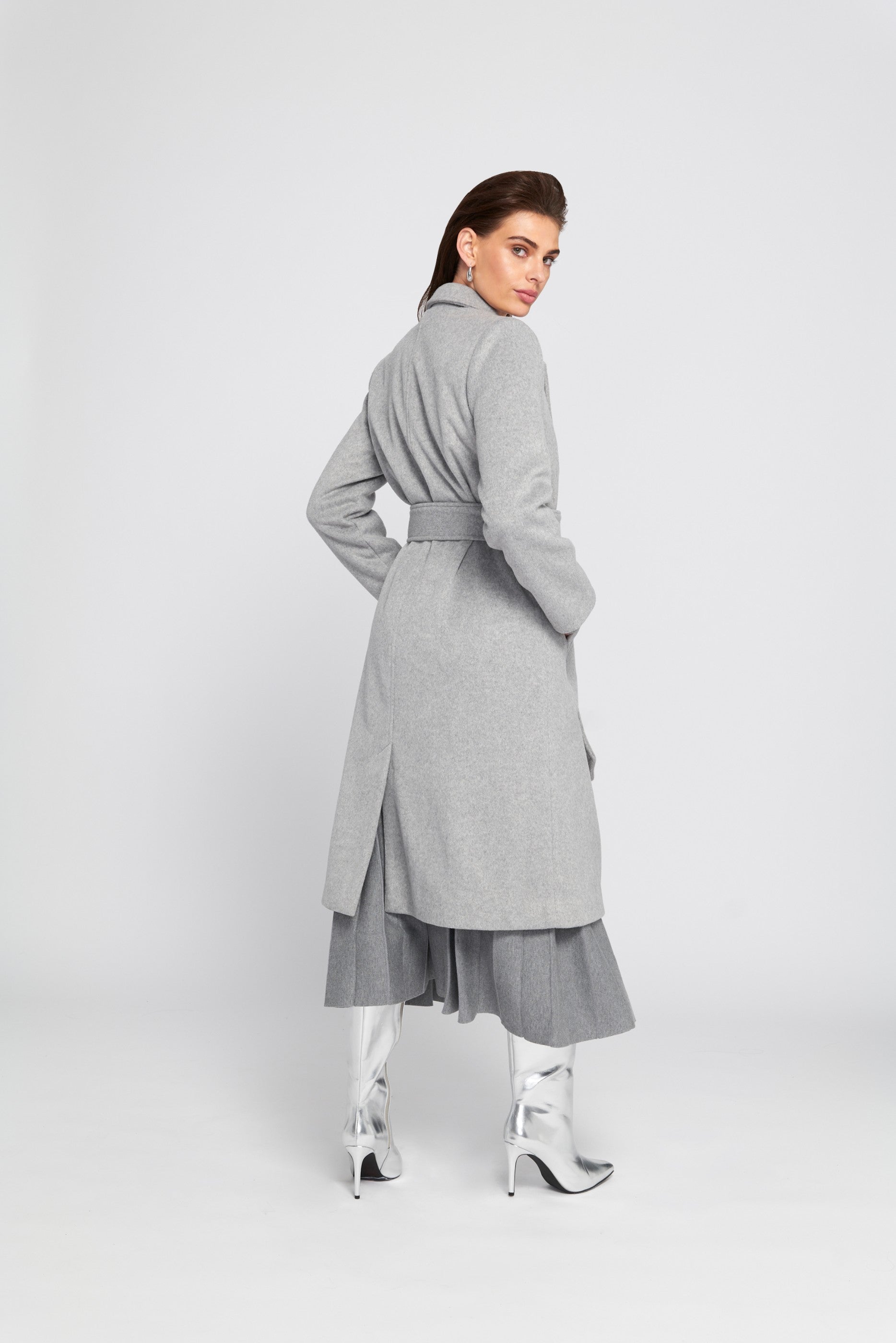 - Tailored wrap silhouette with self-tie belt for an adjustable, flattering fit